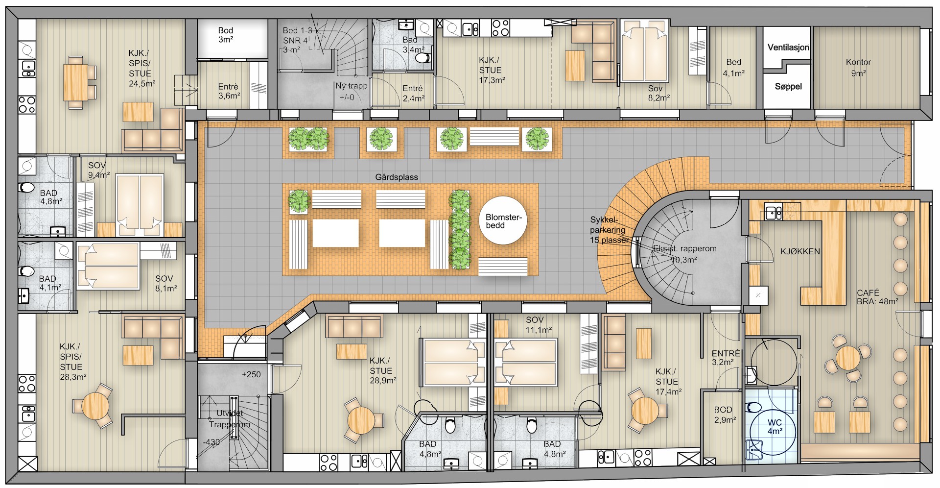 -High quality 2D colour plans of i.e. apartments, offices, public spaces on ships or buildings etc.